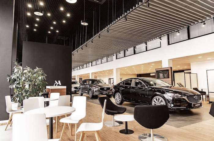 В автосалоне существует несколько зон, к освещению которых надо подойти по-разному. Главная зона - это демонстрационный зал, где выставлены автомобили и где покупатели проводят основную часть времени. Здесь надо учитывать не только специфику помещения, особенности дизайна и корпоративный стиль представленной марки, но также важно чтобы каждый автомобиль был хорошо виден покупателю