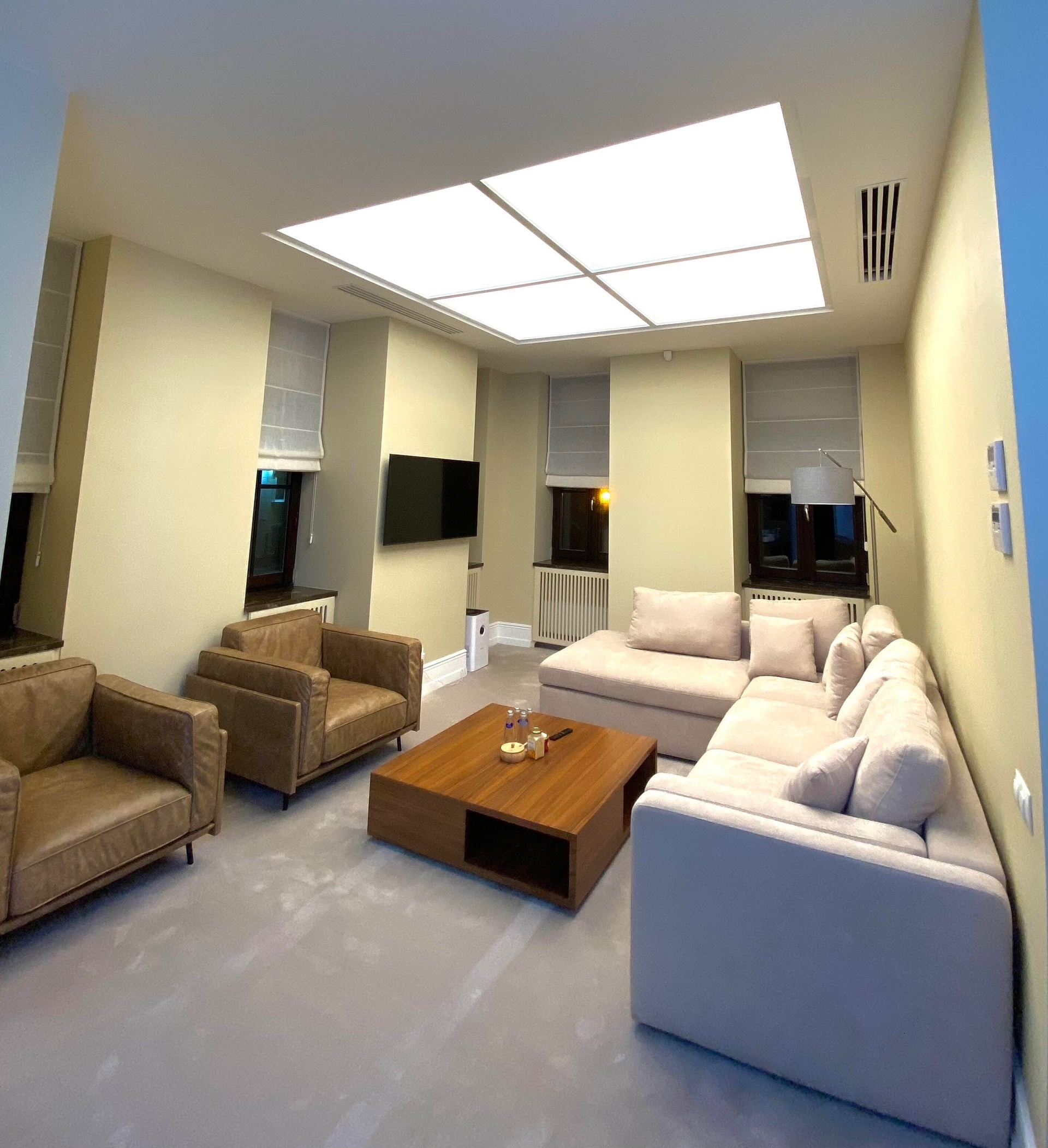 Так же к световому потолку в гостиной можно применить такие функции как: