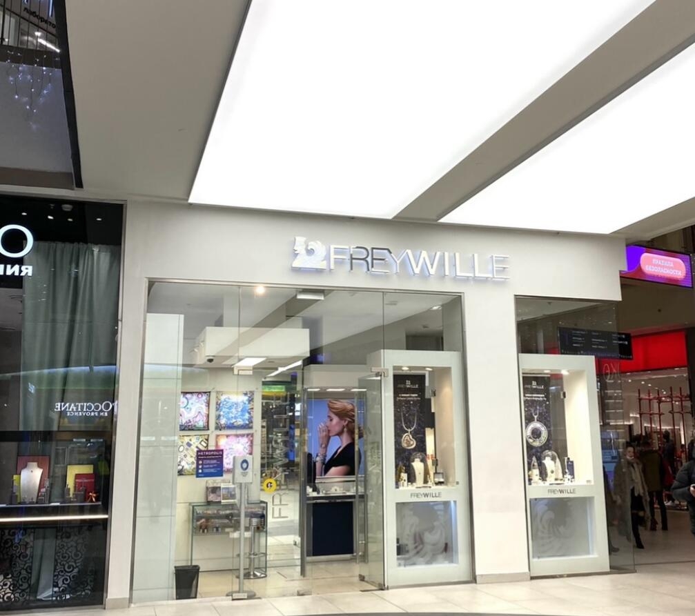 Световые натяжные потолки в для освещения торгового центра, конструктивно состоят из ткани или пленки ПВХ, экрана светового поля, блоков питания и управления, крепление происходит к стене или к борту ниши по периметру помещения.