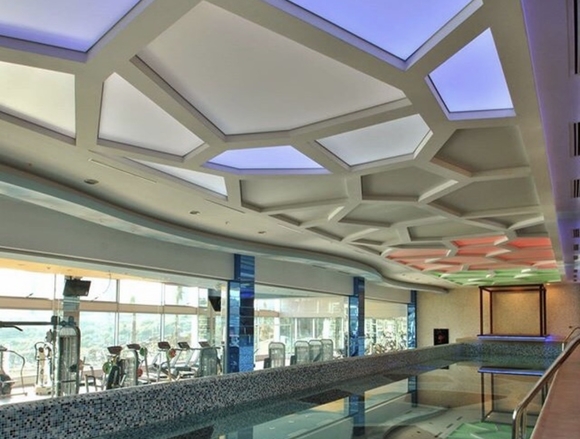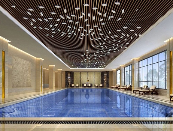 При необходимости сделаем дизайн на потолок в бассейн, чертеж, визуализацию