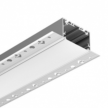 Алюминиевый анодированный встраиваемый профиль. Скрытой установки (под строительную отделку). Экран утоплен в плоскости профиля, что позволяет скрыть источник света от прямого контакта с глазами. Размер с фланцами 2000х85х51 мм. Цена за 1 м.