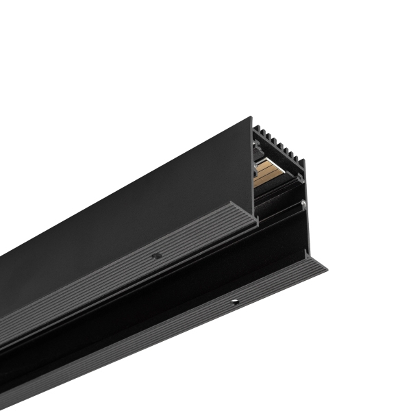 Встраиваемый магнитный трек с фланцем, длина 1040мм. DC24V. Материал алюминий, цвет черный. Размер ДxШxВ: 1000x45x60мм. Размер (с учетом заглушек и фланцев) ДxШxВ: 1040x75x60мм. Установка в отверстие ДхШхВ 1015x50x70мм.