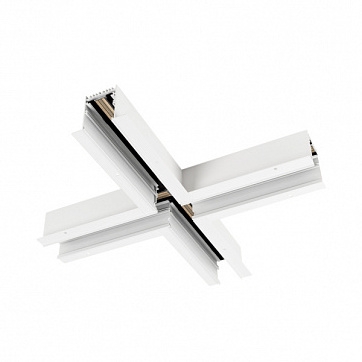 Крестовой прямой коннектор для встраиваемого трека MAG-TRACK-4560-F. Материал алюминий, цвет белый. Размеры 415x415x75x60мм. DC24V.