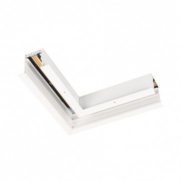 Угловой прямой коннектор для встраиваемого трека MAG-TRACK-4560-F. Материал алюминий, цвет белый. Размеры 245x245x75x60мм. DC24V.